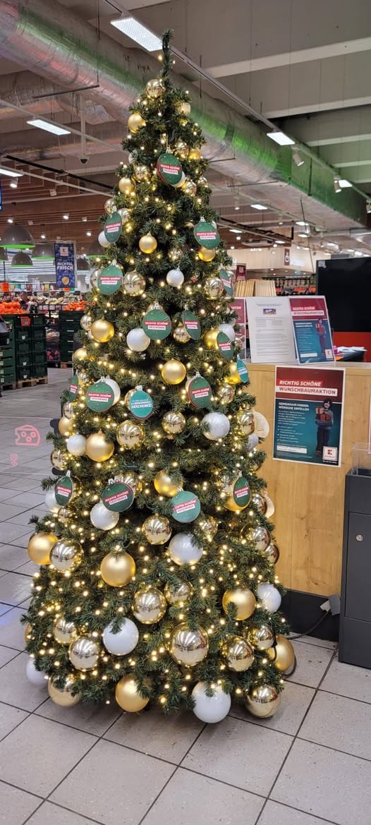 An seinen Zweigen hängen noch einige Geschenkkugeln – jede einzelne trägt den stillen Wunsch eines Kindes in sich.
